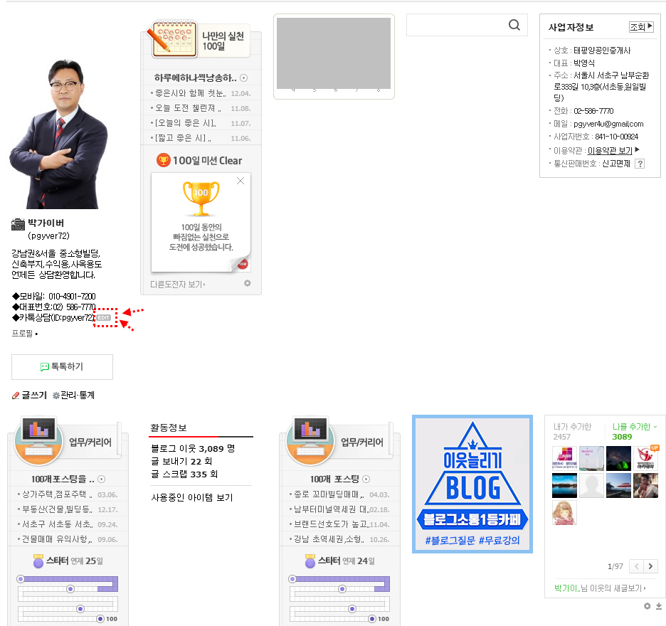 제 블로그를 샘플로 보여드립니다. 프로필영역에 보면 현재는 정렬해서 반듯하게 보이는데,이전에는 정렬이 되지 않고,이빨 빠진거처럼 보일때가 있었습니다. 아무래도 얼굴인데,보기가 그렇잖아요...