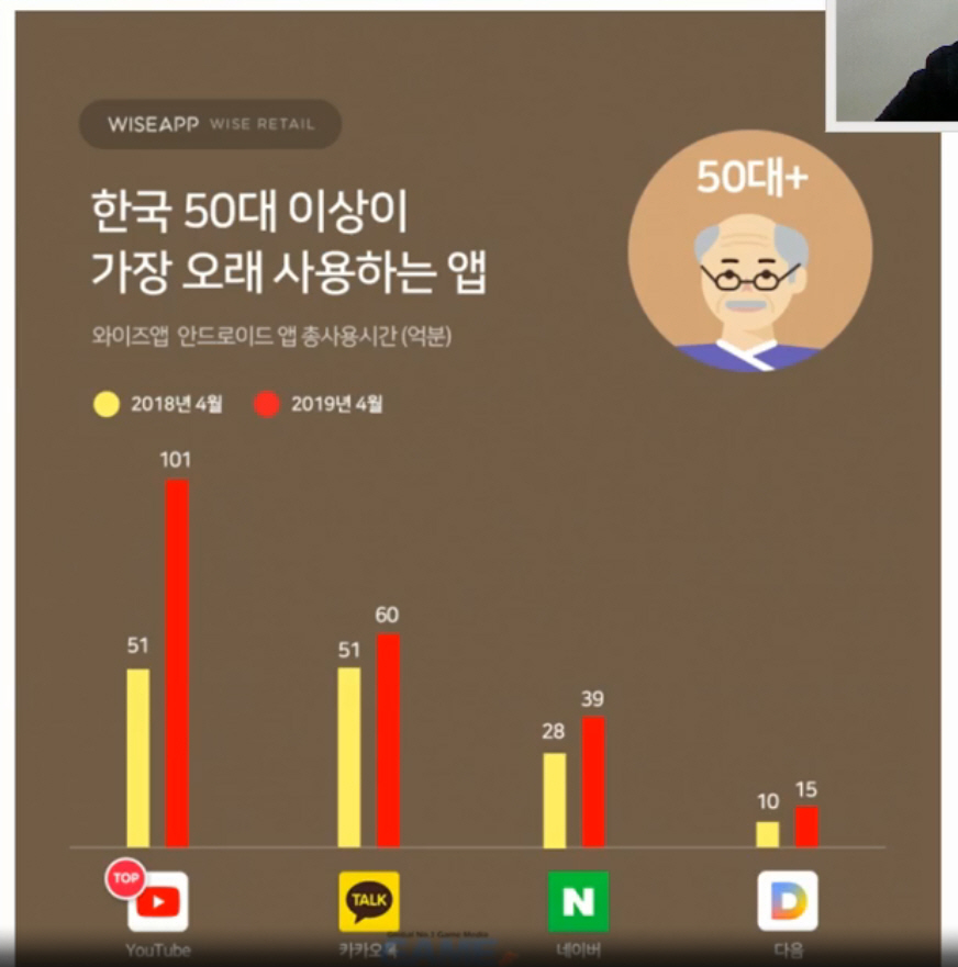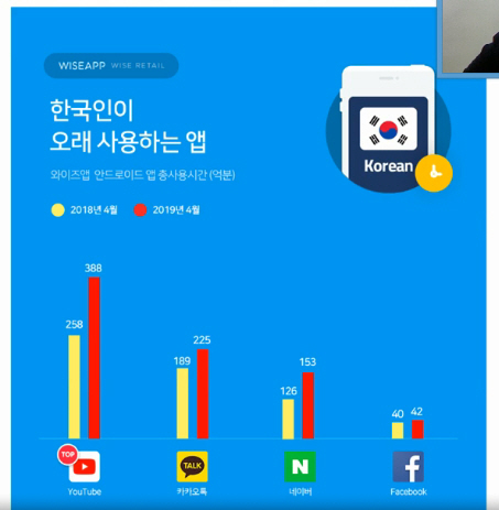 이젠 유튜브가 한국인이 가장 오래 사용하는 앱이라고 합니다.카카오톡이 2위에 랭크되어 있네요.