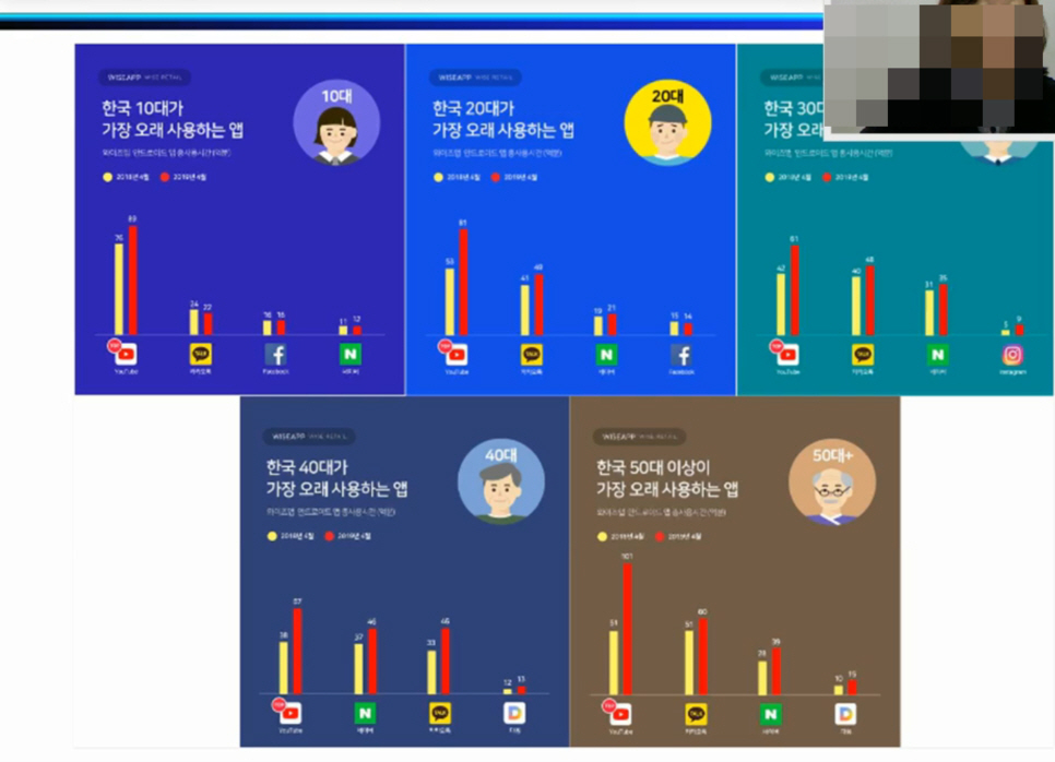 통계에서 보듯이 각 연령대별로 유튜브방송을 가장 많이 보는거 같습니다....