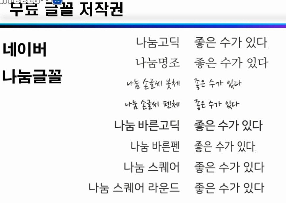 글꼴도 저작권이 있는거 아시죠?? 아무거나 사용하면 저작권 위반이 발생할수 있으니,잘 알고 사용해야 겠지요.네이버에서 베포하는 나눔글꼴입니다...